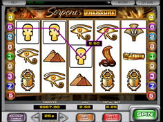 The objective of Serpent's Treasure is to match the symbols of each one of the five reels to a winning combination. This is a five reel multi-pay line slot game which has 9 pay lines. Payouts depend on what symbols will match on a line.